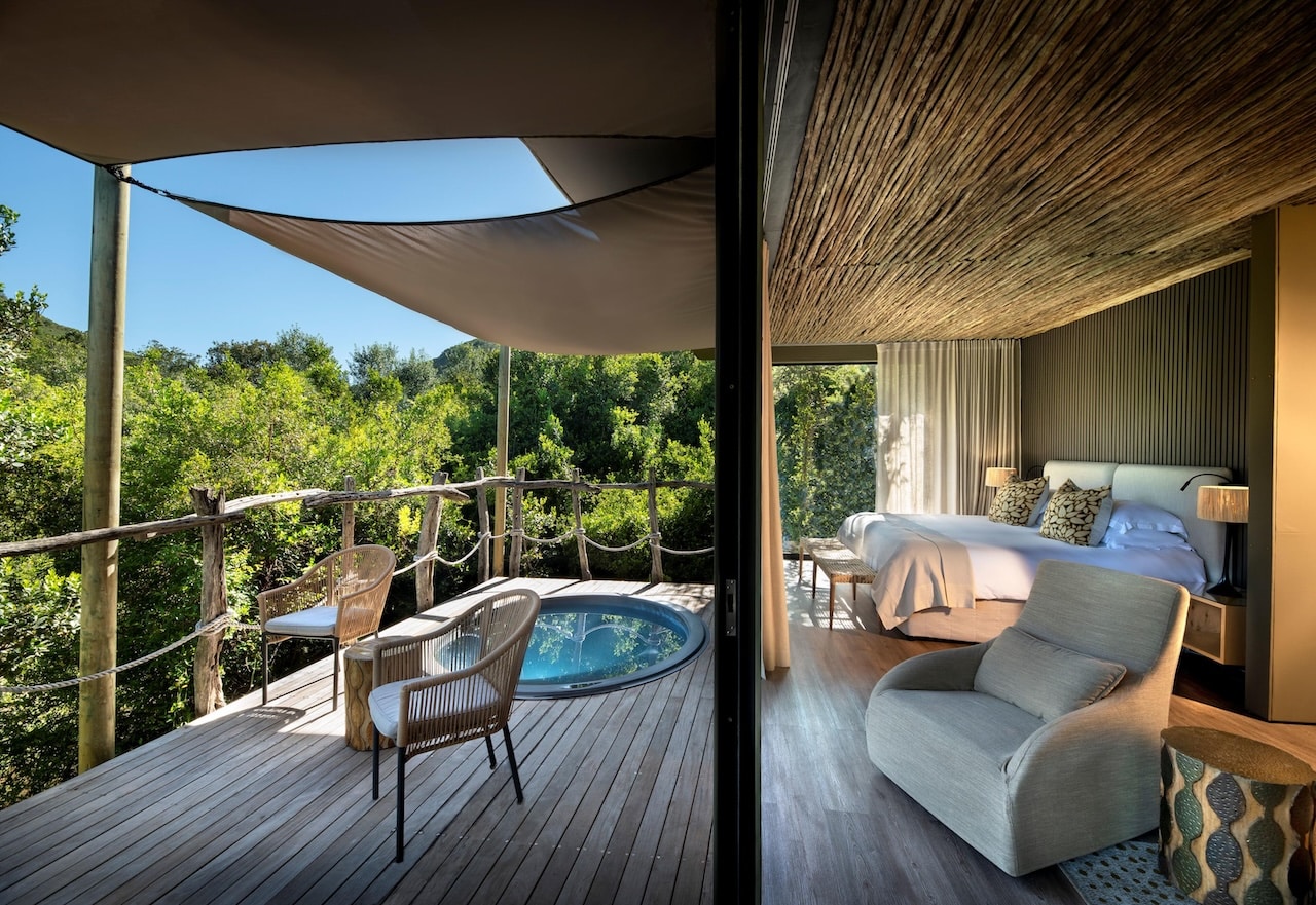 - Luxury tented suites with private decks and plunge pools