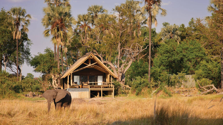 - Located on a pristine 25,000-hectare private concession bordering the Moremi Game Reserve, known for exceptional Big Five game viewing and diverse wildlife.