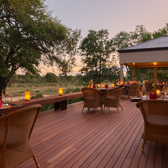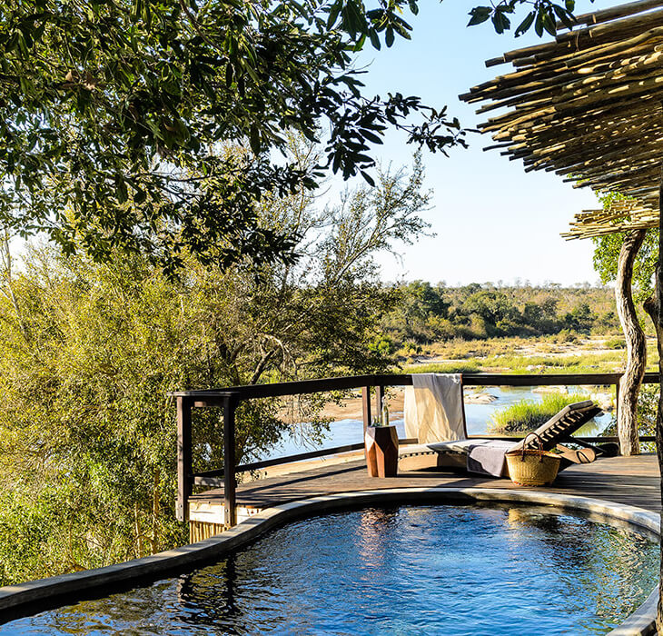 Dotted along the ridge with sweeping views of the Luvuvhu River and the surrounding wilderness, Read moreour River View Spaces offer a cocoon of comfort and luxury in the untouched beauty of the northern Kruger. Spacious air-conditioned suites feature an elegant lounge area and fireplace. Each suite is furnished with a king-sized bed, indoor and outdoor showers, a spacious bathtub, a well-stocked mini bar, and a private outdoor terrace. Twin beds can be arranged upon request. Read Less